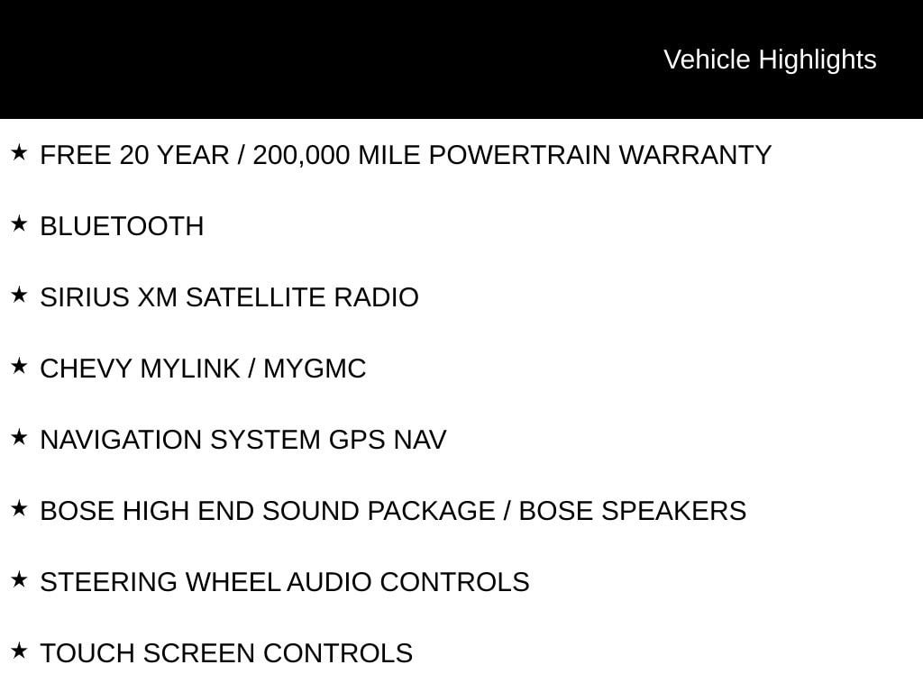 FREE 20 YEAR / 200,000 MILE POWERTRAIN WARRANTY, BLUETOOTH, SIRIUS XM SATELLITE RADIO, CHEVY MYLINK / MYGMC, NAVIGATION SYSTEM GPS NAV, BOSE HIGH END SOUND PACKAGE / BOSE SPEAKERS, STEERING WHEEL AUDIO CONTROLS, TOUCH SCREEN CONTROLS, BACKUP CAMERA, HOMELINK UNIVERSAL GARAGE DOOR OPENER, WIRELESS CHARGING, HEADS-UP DISPLAY, KEYLESS PUSH BUTTON START, COLLISION WARNING ALERT SYSTEM, POWER DRIVER SEAT, POWER PASSENGER SEAT, HEATED/COOLED LEATHER SEATS, MEMORY PACKAGE / MEMORY SEAT, REMOTE START, HEATED STEERING WHEEL, ALL WEATHER FLOOR MATS, 2LT SERIES, BATTERY PROTECTIION PACKAGE, CARBON FLASH METALLIC PAINTED OUTSIDE MIRROR, COUPE ENGINE APPEARANCE PACKAGE, STEALTH INTERIOR PACKAGE, Z51 PERFORMANCE PACKAGE, 19 FRONT AND 20 REAR 5-SPLIT SPOKE WHEELS, 14 SPEAKERS, AIR CONDITIONING, AUTOMATIC LEVELING SYSTEM HEADLAMP CONTROL, AUTOMATIC TEMPERATURE CONTROL, BRAKE ASSIST, BRIGHT RED-PAINTED CALIPERS, CARBON FLASH METALLIC-PAINTED OUTSIDE MIRRORS, COMPASS, DELAY-OFF HEADLIGHTS, DRIVER VANITY MIRROR, ENGINE LIGHTING, EXTERIOR PARKING CAMERA REAR, FRONT DUAL ZONE A/C, FRONT LICENSE PLATE BRACKET, FRONT LIFT ADJUSTABLE HEIGHT WITH MEMORY, HEATED DOOR MIRRORS, LOW TIRE PRESSURE WARNING, OCCUPANT SENSING AIRBAG, OUTSIDE TEMPERATURE DISPLAY, OVERHEAD CONSOLE, PANIC ALARM, PASSENGER VANITY MIRROR, PERFORMANCE DATA AND VIDEO RECORDER, PERFORMANCE EXHAUST WITH STAINLESS-STEEL TIPS, PERFORMANCE TRACTION MANAGEMENT, POWER DOOR MIRRORS, POWER WINDOWS, REAR WINDOW DEFROSTER, REMOTE KEYLESS ENTRY, SECURITY SYSTEM, SIDE BLIND ZONE ALERT, SPEED-SENSING STEERING, TELESCOPING STEERING WHEEL, TILT STEERING WHEEL, TORCH RED SEAT BELT COLOR, TURN SIGNAL INDICATOR MIRRORS, VARIABLY INTERMITTENT WIPERS.