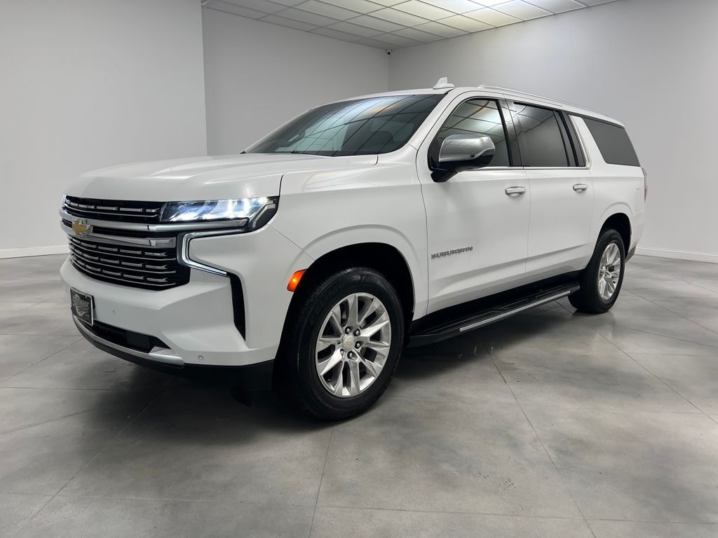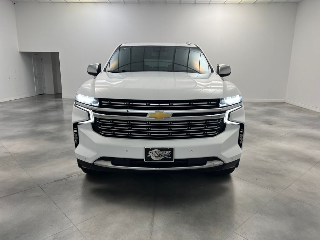Preferred Equipment Group 1LZ (1st & 2nd Row Color-Keyed Carpeted Floor Mats, 3rd Row 60/40 Power-Folding Split-Bench, Auto-Dimming Inside Rear-View Mirror, Bose 10-Speaker Surround w/CenterPoint, Bright Front & Rear Door Sill Plates, Chrome Door Handles w/Body-Color Strip, Chrome Mirror Caps, Color-Keyed Carpeting Floor Covering, Driver & Front Outboard Passenger Airbags, Dual Exhaust System, Enhanced Driver Information Center, Floor Console, Hands-Free Rear Power Programmable Liftgate, Heated & Ventilated Driver & Front Passenger Seats, Heated 2nd Row Outboard Seats, Heated Driver & Front Passenger Seats, Heated Steering Wheel, Infotainment Display, Lane Change Alert w/Side Blind Zone Alert, LED Daytime Running Lamps, Memory Settings, Outside Heated Power-Adjustable Mirrors, Power Release 2nd Row Bucket Seats, Power Tilt & Telescopic Steering Column, Rear Cross Traffic Alert, Remote Start, Safety Alert Seat, SiriusXM Radio w/360L, Universal Home Remote, Wireless Charging, and Wrapped Steering Wheel), 10 Speakers, 20" x 9" Polished Aluminum Wheels, 3.23 Rear Axle Ratio, 3rd row seats: split-bench, 4-Wheel Disc Brakes, ABS brakes, Adaptive suspension, Air Conditioning, Alloy wheels, AM/FM radio: SiriusXM with 360L, Apple CarPlay/Android Auto, Auto High-beam Headlights, Auto-dimming door mirrors, Auto-dimming Rear-View mirror, Auto-leveling suspension, Automatic temperature control, Brake assist, Bumpers: body-color, Compass, Delay-off headlights, Driver door bin, Driver vanity mirror, Dual front impact airbags, Dual front side impact airbags, Electronic Stability Control, Emergency communication system: OnStar and Chevrolet connected services capable, Four wheel independent suspension, Front anti-roll bar, Front Bucket Seats, Front Center Armrest, Front dual zone A/C, Front reading lights, Fully automatic headlights, Garage door transmitter, Heated door mirrors, Heated front seats, Heated rear seats, Heated steering wheel, Illuminated entry, Low tire pressure warning, Magnetic Ride Control Suspension, Memory seat, Navigation System, Not Equipped w/4-Way Driver & Fr Pass Pwr Lumbar, Occupant sensing airbag, Outside temperature display, Overhead airbag, Overhead console, Panic alarm, Passenger door bin, Passenger vanity mirror, Perforated Leather Seating Surfaces, Power door mirrors, Power driver seat, Power Liftgate, Power passenger seat, Power steering, Power windows, Premium audio system: Chevrolet Infotainment 3 Premium, Radio: Chevrolet Infotainment 3 Premium System, Rain sensing wipers, Rear air conditioning, Rear anti-roll bar, Rear reading lights, Rear window defroster, Rear window wiper, Remote keyless entry, Roof rack: rails only, Security system, Speed control, Speed-sensing steering, Split folding rear seat, Spoiler, Steering wheel memory, Steering wheel mounted audio controls, Tachometer, Telescoping steering wheel, Tilt steering wheel, Traction control, Trip computer, Turn signal indicator mirrors, Variably intermittent wipers, Ventilated front seats, and Voltmeter.