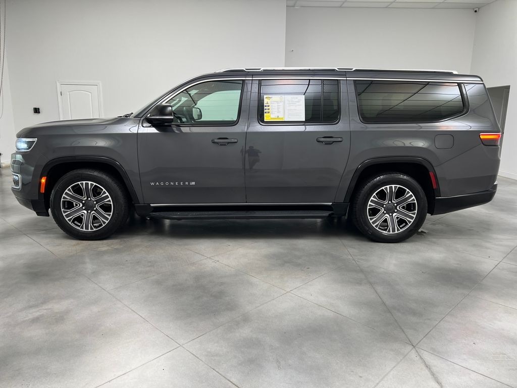Quick Order Package 25J, 10 Speakers, 3.55 Rear Axle Ratio, 3rd row seats: bench, 4-Wheel Disc Brakes, ABS brakes, Adjustable pedals, Air Conditioning, Alloy wheels, AM/FM radio: SiriusXM with 360L, Anti-whiplash front head restraints, Apple CarPlay/Android Auto, Audio memory, Auto-dimming door mirrors, Auto-dimming Rear-View mirror, Auto-leveling suspension, Automatic temperature control, Brake assist, Bumpers: body-color, Compass, Delay-off headlights, Driver door bin, Driver vanity mirror, Driver's Seat Mounted Armrest, Dual front impact airbags, Dual front side impact airbags, Electronic Stability Control, Emergency communication system: Wagoneer Connect, Exterior Parking Camera Rear, Four wheel independent suspension, Front anti-roll bar, Front Bucket Seats, Front Center Armrest w/Storage, Front dual zone A/C, Front fog lights, Front reading lights, Fully automatic headlights, Garage door transmitter, Genuine wood console insert, Genuine wood dashboard insert, Genuine wood door panel insert, Heated door mirrors, Heated front seats, Heated steering wheel, Illuminated entry, Knee airbag, Leather Trimmed Bucket Seats, Low tire pressure warning, Memory seat, Navigation System, Normal Duty Suspension, Occupant sensing airbag, Outside temperature display, Overhead airbag, Overhead console, Panic alarm, Passenger door bin, Passenger seat mounted armrest, Passenger vanity mirror, Pedal memory, Power adjustable front head restraints, Power door mirrors, Power driver seat, Power Liftgate, Power passenger seat, Power steering, Power windows, Radio data system, Radio: Uconnect 5 Nav w/10.1" Display, Rain sensing wipers, Rear air conditioning, Rear anti-roll bar, Rear reading lights, Rear seat center armrest, Rear window defroster, Rear window wiper, Reclining 3rd row seat, Remote keyless entry, Security system, Speed control, Speed-sensing steering, Speed-Sensitive Wipers, Split folding rear seat, Steering wheel memory, Steering wheel mounted audio controls, Tachometer, Telescoping steering wheel, Tilt steering wheel, Traction control, Trip computer, Turn signal indicator mirrors, Variably intermittent wipers, Ventilated front seats, Voltmeter, and Wheels: 20" x 9.0" Premium 2 Aluminum.